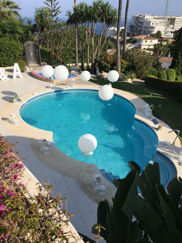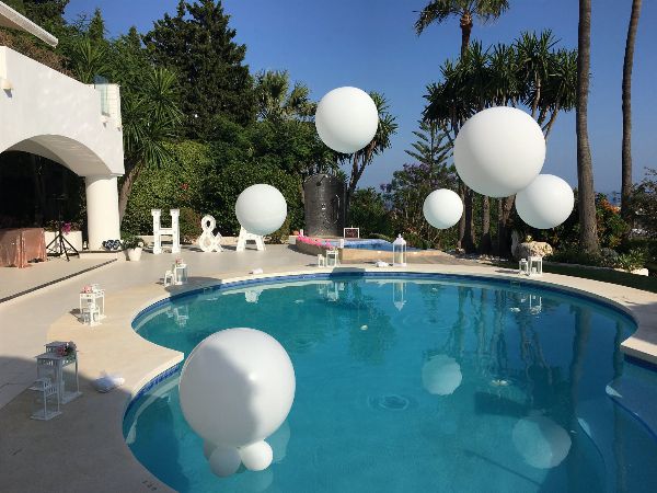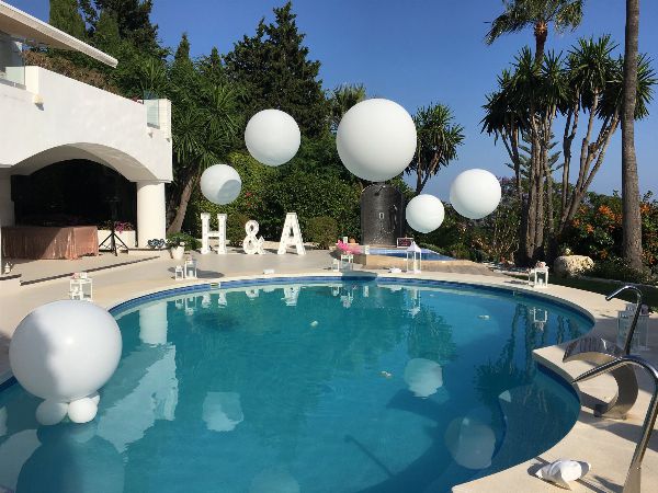 Una imagen preciosa de nuestros globos enviada por Karen y su equipo de Marbella Marriages. Los globos combinaron perfectamente con el resto de la decoración para la boda de Hannah y Andrew en Villa Katerina en Benalmádena.
